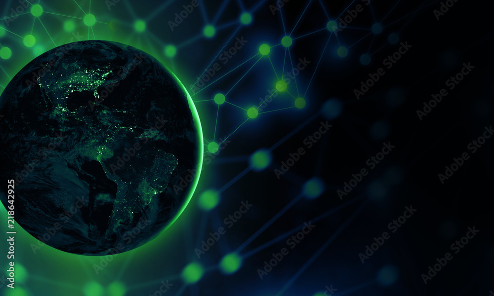 world with digital technology light internet network background blue Elements of this image furnished by NASA