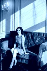 Fashionable and sexy brunette model girl with curly hair in red stylish dress and in red shoes sits on the vintage red sofa and posing at luxury interior