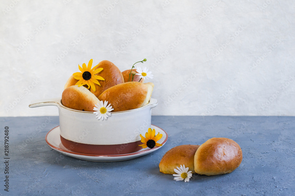 Homemade russian Piroshki - a Russian puff pastry stuffed with cabbage.
