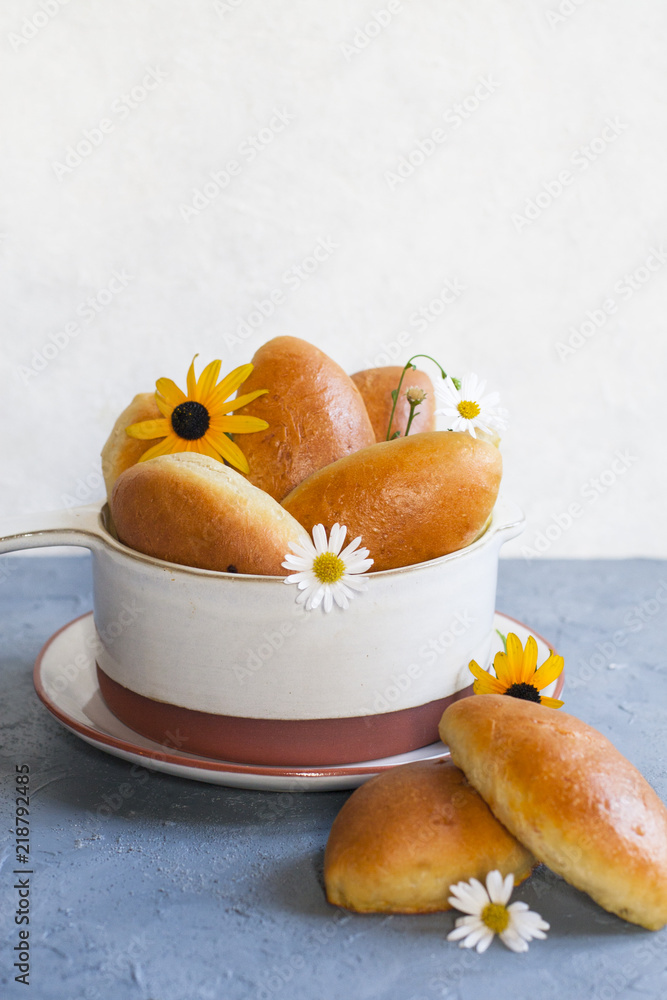 Homemade russian Piroshki - a Russian puff pastry stuffed with cabbage.