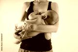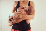 Happy mother with newborn baby infant on hands standing and breasfeeding lacting lactation health and care bonding time