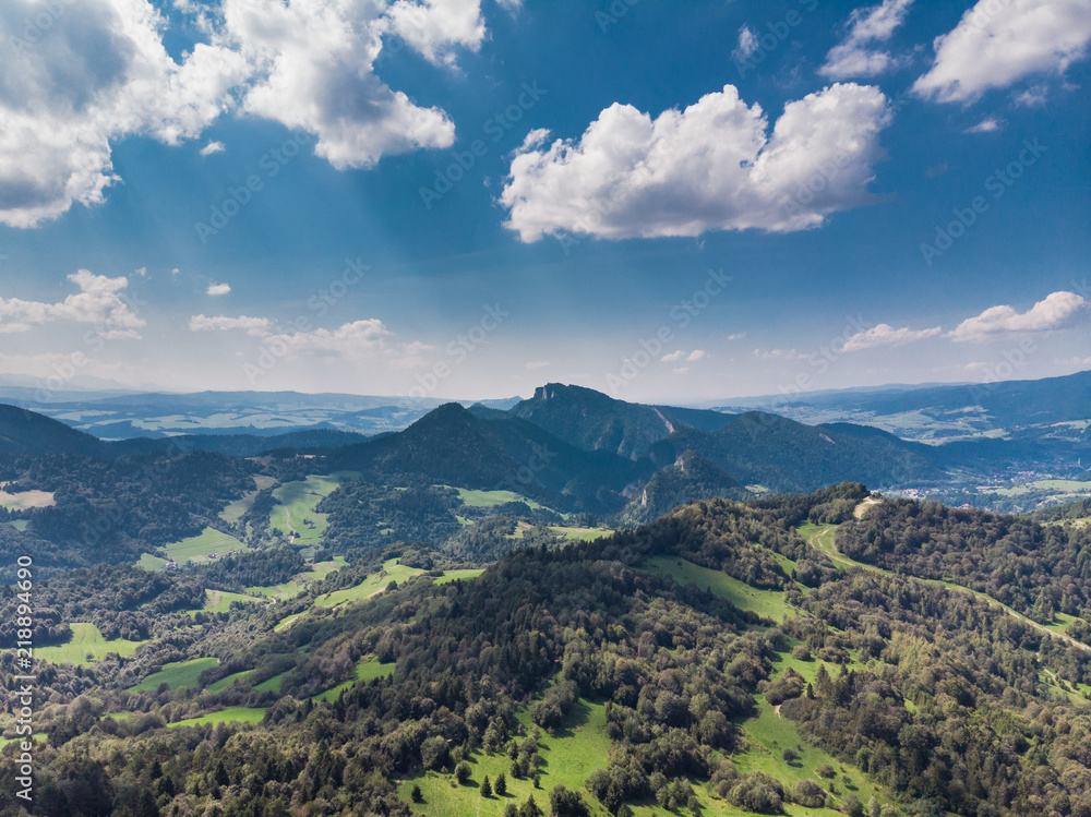 Beautiful Pieniny Mountains in Poland, aerial drone view