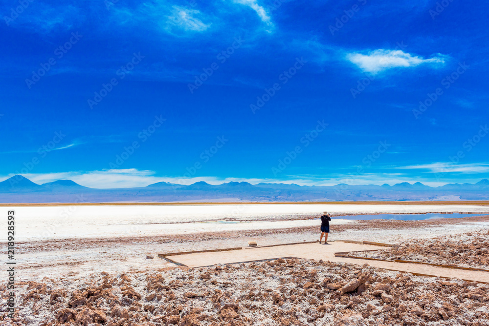 Landscape in Atacama desert, Salt Lake, Chile. Copy space for text.