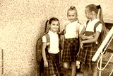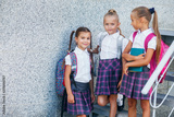 portrait of school kids with backpack after school. Beginning of lessons. First day of fall.