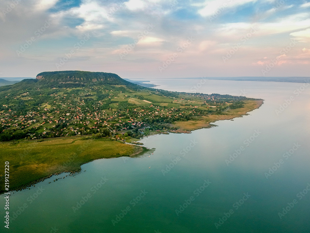 Aerial view of Badacsony hill at lake Balaton, Hungary