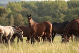 Horses in the pasture at dawn
