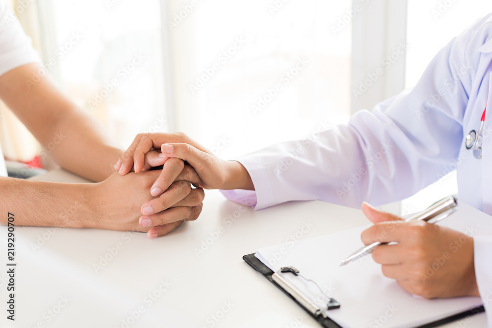Doctor holding patient's hand. Medicine and health care concept. Doctor and patient.
