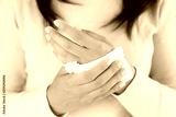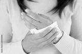Woman cleaning her hands with a tissue. Healthcare and medical concept.