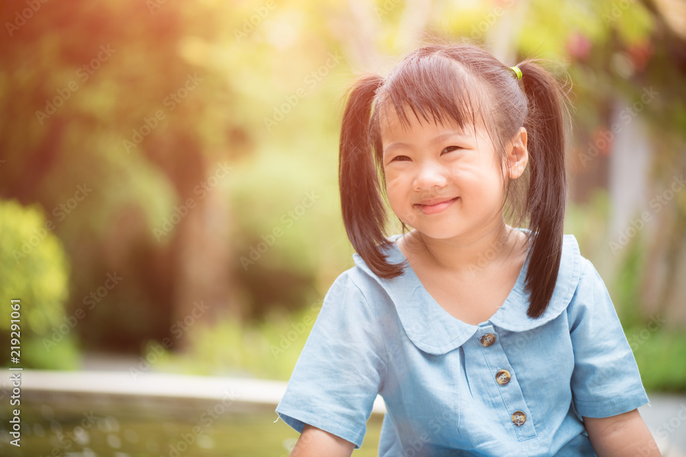 Happy little girl playing water in colorful garden on hot summer day. Summer activities for kids.
