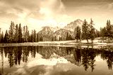 Autumn-winter landscape with lake on Lago Antrno, Dolomites, Italy in pastel colors
