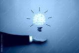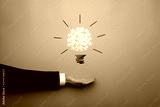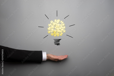 Conceptual bulb drawing with yellow scattered puzzle pieces