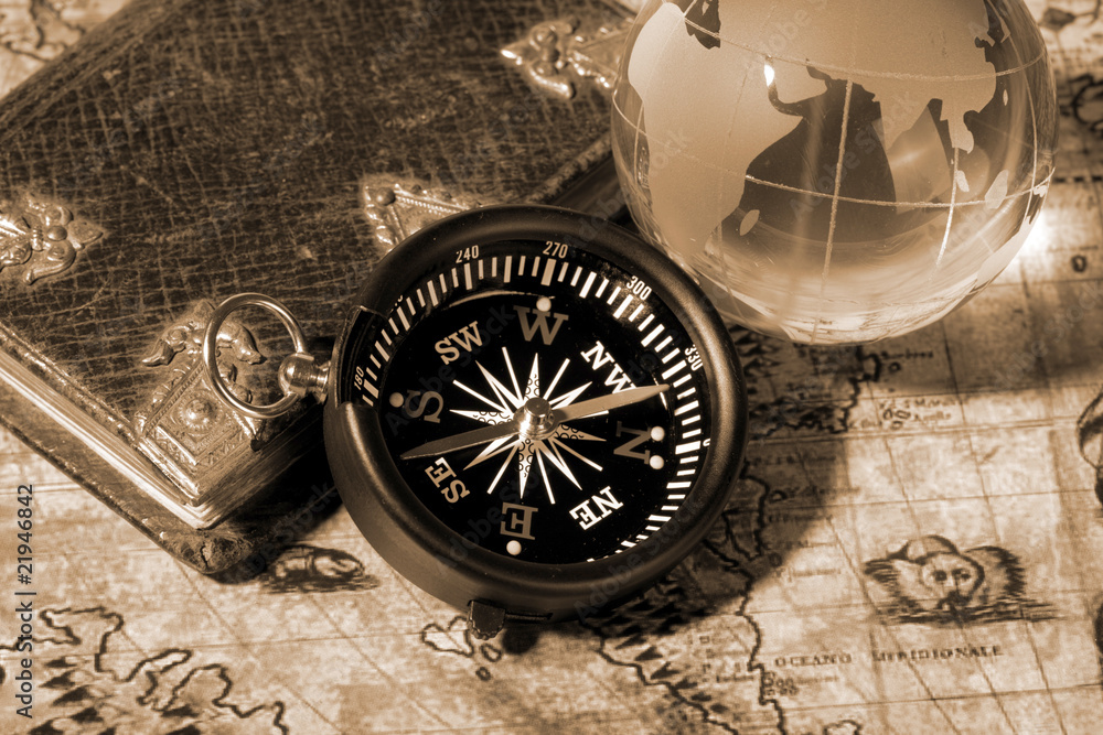 Compass on the old map