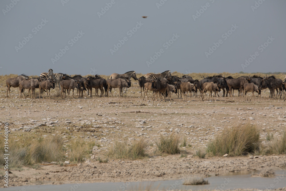 gnu buffalo group eating in africa
