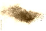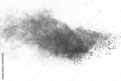 Black powder explosion against white background.