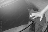 human hand showing cleaning car