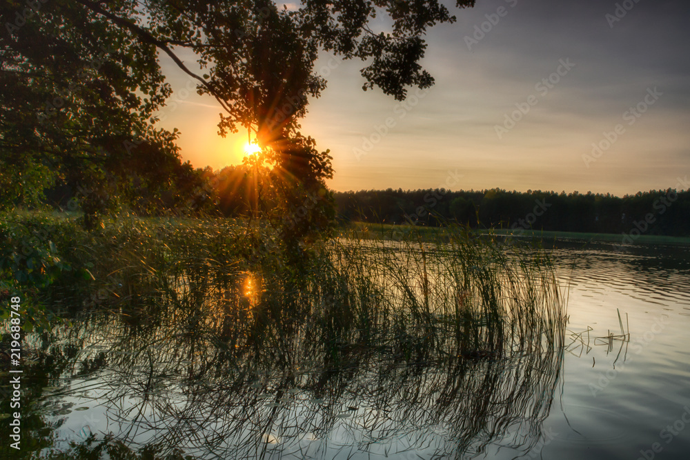Zachód słońca nad malowniczym jeziorem