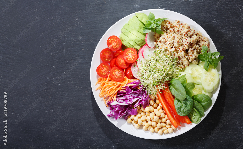 Vegetarian food. Plate of healthy salad with quinoa and vegetables