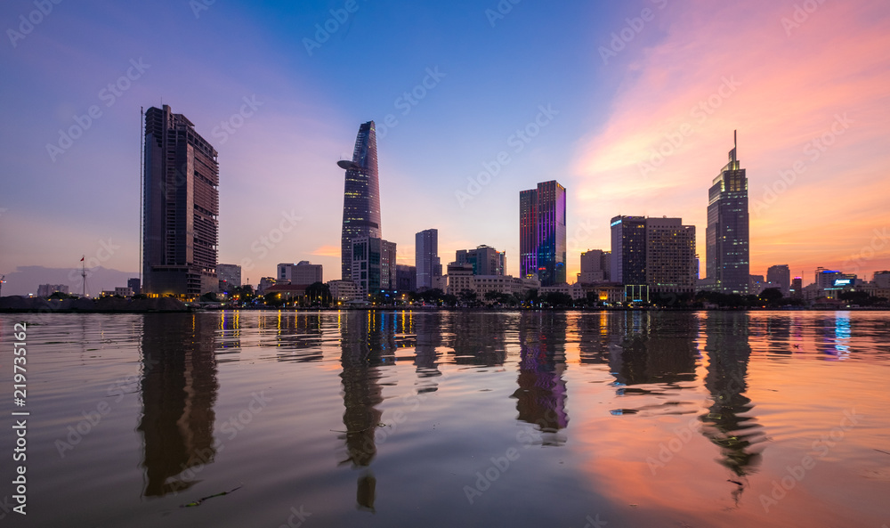 Beautiful landscape sunset of Ho Chi Minh city or Sai Gon, Vietnam. Royalty high-quality free stock image of Ho Chi Minh City with skyscraper buildings. Ho Chi Minh city is the biggest city in Vietnam
