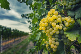 beautiful fresh yellow grapes in late summer vineyard