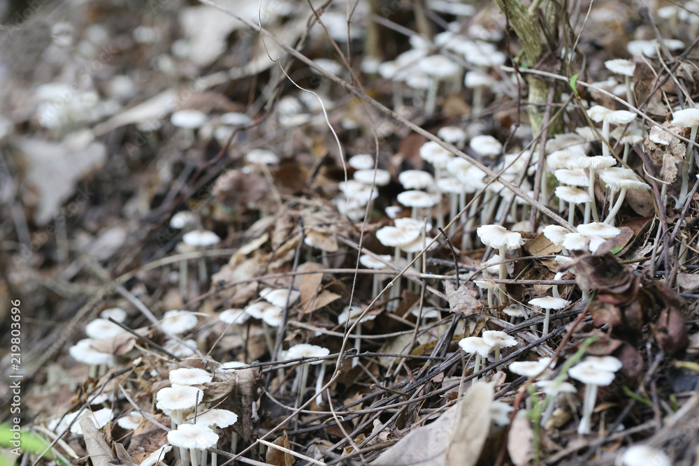 Small Termitomyces fuliginosus Heim on vegetable garden ground.