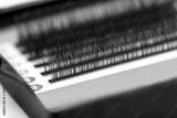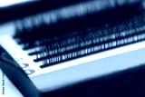 Eyelash Extension tools on white background. Accessories for eyelash extensions. Close-up. Macro. Artificial Blue ombre lashes.