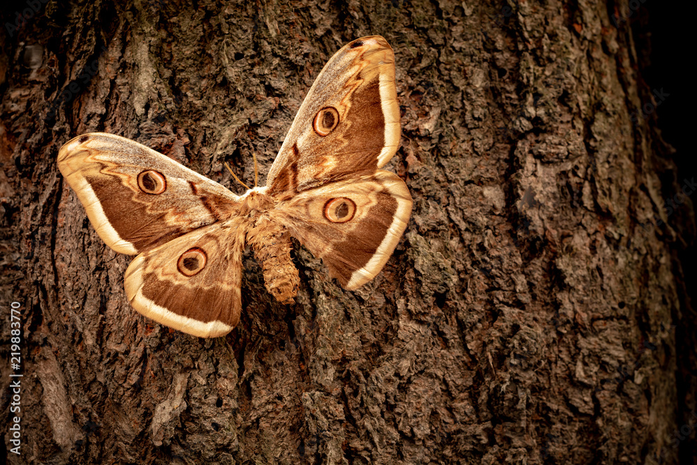 Saturnia pyri butterfly on a tree bark
