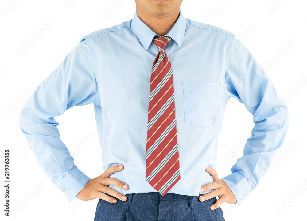 Man in long sleeve shirt wear standing with akimbo with clipping path