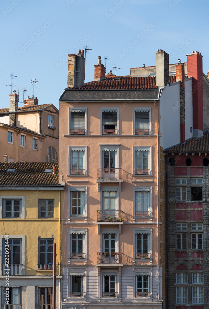 Colorful, old buildings in Vieux-Lyon, the old town of Lyon.