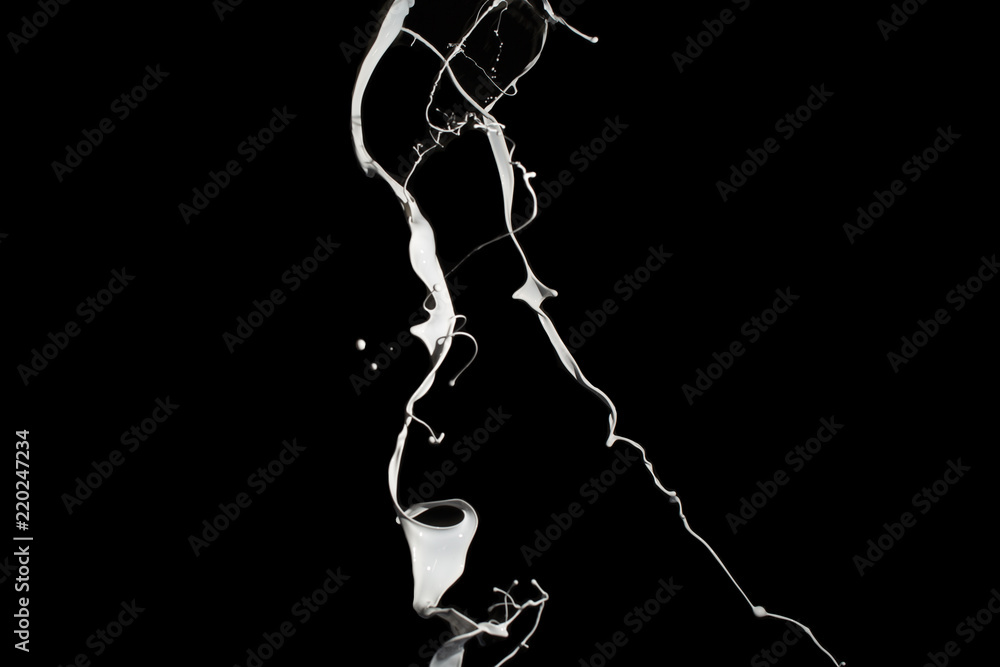 White paint splash isolated on black background.