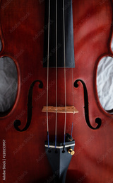 The front side of wooden violin,show texture and parts of violin.