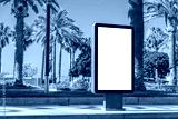 Outdoor billboard advertisement in seaside resort city mockup