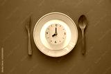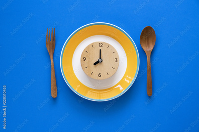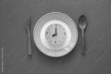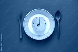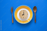 Food clock. Healthy food concept on blue background