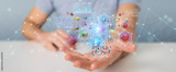Businessman analyzing bacteria microscopic close-up 3D rendering