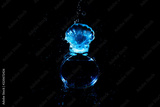 water splash drop with glass bottle of cosmetic perfume smell luxury on black background