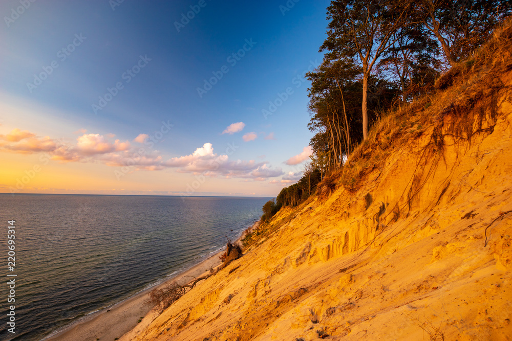 Baltic Sea, Poland-cliffs in the Wolinski National Park in the light of the setting sun