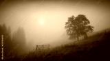 Carpathian valley in a deep morning fog