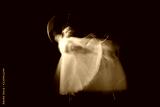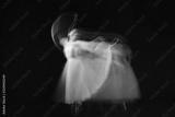 The photo as art - a sensual and emotional dance of beautiful ballerina through the veil on a dark background. A stroboscopic image of the one model