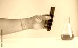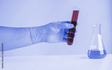 Laboratory glassware or test tube in hand for research.