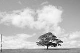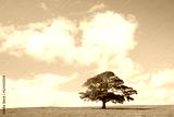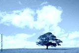 Single tree on green grass against blue sky and clouds