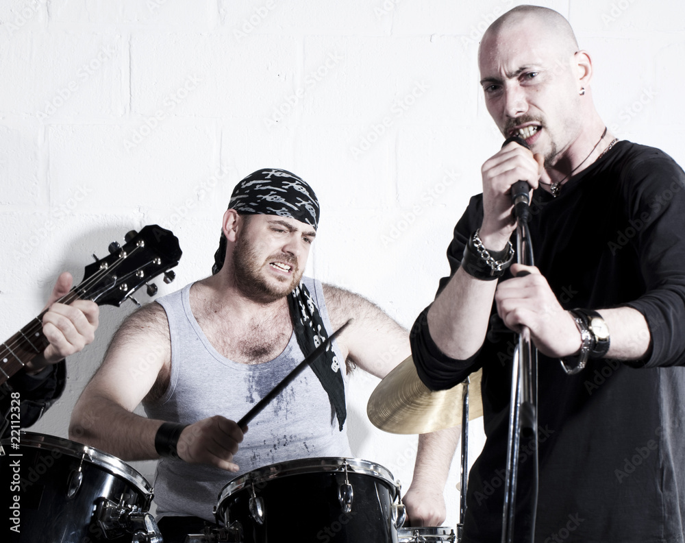 batteur et chanteur de groupe rock en sueur