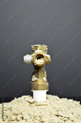Plumbing and hydraulic safety group for a water heater, damaged by a problem of limescale. Pressure relief valve.