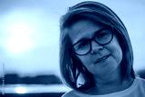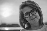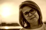 Portrait of a girl head at sunset. Close up to a smiling human face at dawn