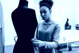 Cheerful dark skinned dressmaker making custom clothing for clients, standing near mannequin in tailor shop, measurement. African American university student learning fashion design. Brainstorming.