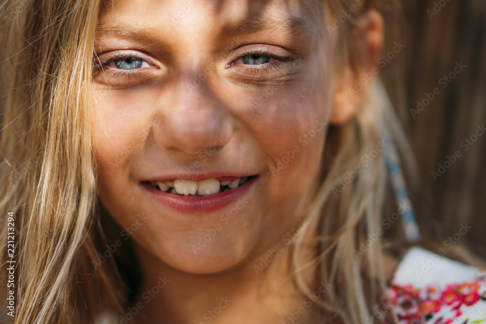 Lovely blue-eyed girl and funny blonde posing at camera.