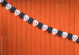 happy orange Halloween background with skeleton
