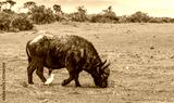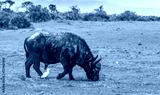 Interaction between a bird and a buffalo in the African bush image with copy space in landscape format