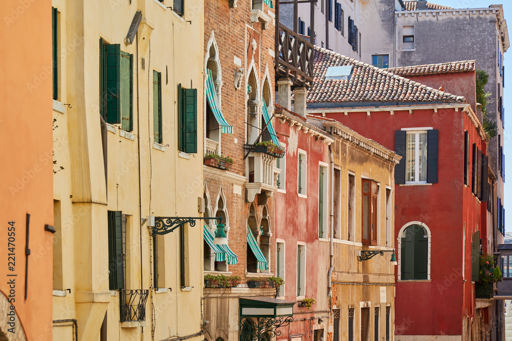 Venice colorful buildings and houses facades in a sunny day in Italy