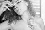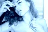 young beautiful curly woman uses serum for face. The concept of facial skin care.