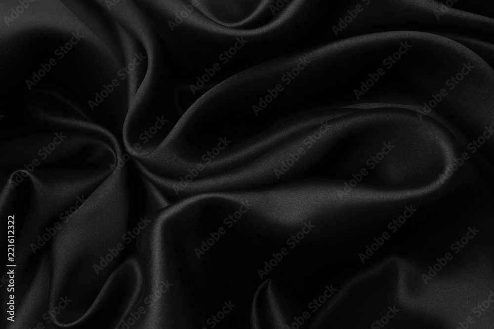 Elegant black satin silk with waves, abstract background.