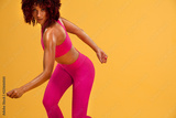 A strong athletic, women sprinter, running wearing in the sportswear, fitness and sport motivation. Runner concept with copy space. Dynamic movement